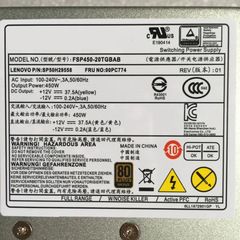 New Computer Power Supplies FSP450-20TGBAB 450W for LENOVO M310 M410 M415 M510 M610 TFX Power Supply