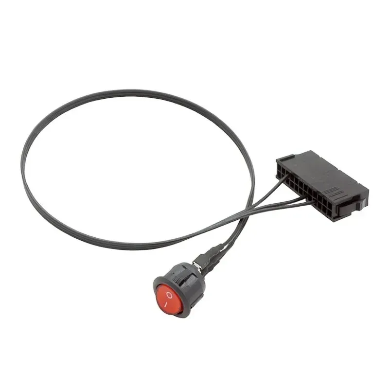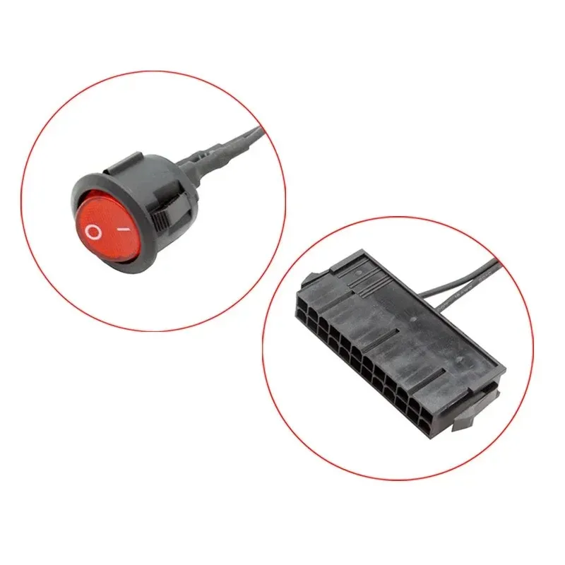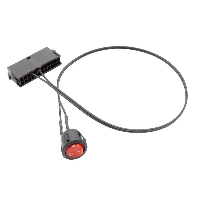 PC Server ATX PSU 24Pin Female Socket Starter Switch Button Power Cable 18AWG Self-Lock Boat Shape 50cm Red Indicator Light
