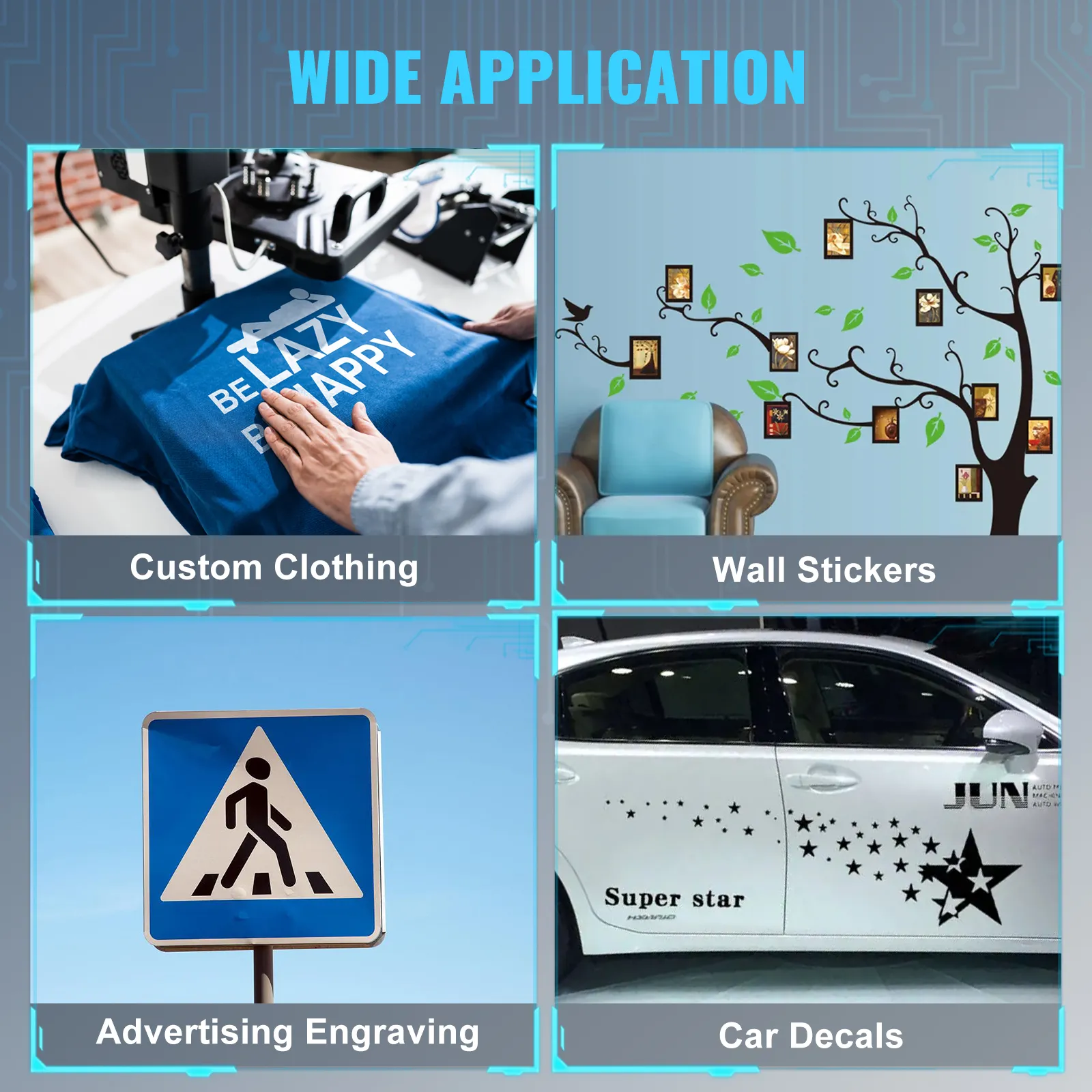 Unmatched All-in-one Accessories: With 5 exclusive rolls of vinyl (black, white, red, blue, and yellow), a utility knife, a ball pen core, holders, 3 replaceable blades, and other items, this practical plotter machine bundle will definitely enjoy a good reputation for its multiple accessories and perfectly satisfy your various DIY requirements.