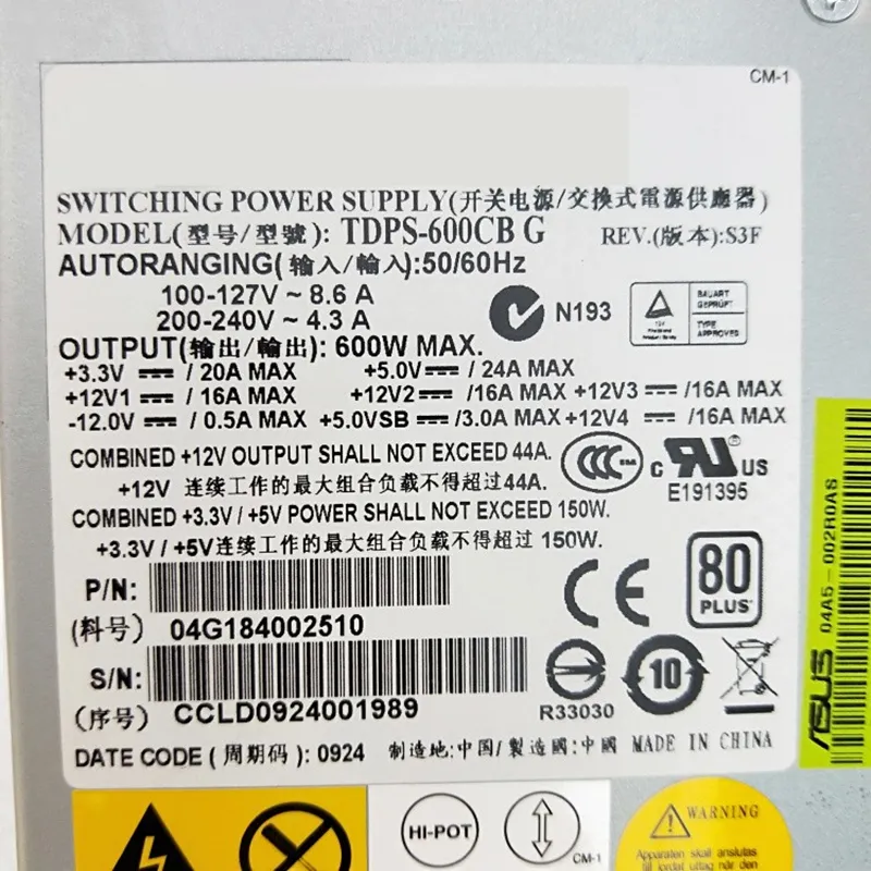 Computer Power Supplies Almost New Original PSU For Delta RS500 I610r-G 600W Switching TDPS-600CB G
