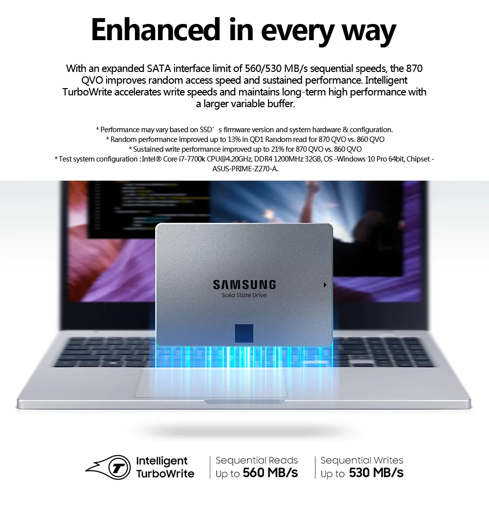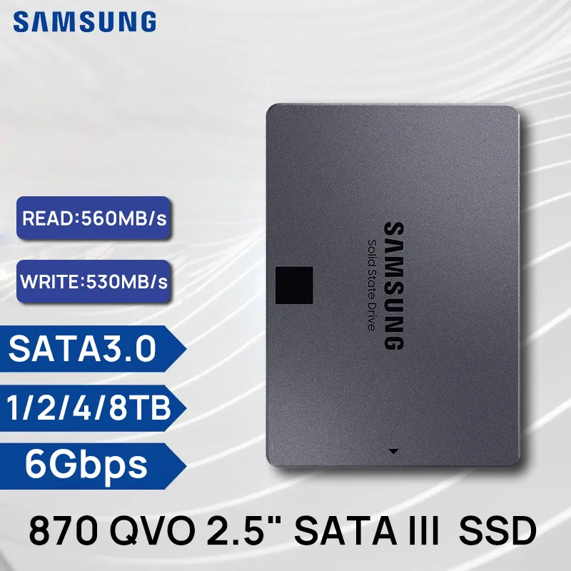 SAMSUNG 870 QVO SSD 2.5 Inch Big Storage 1T 2T 4T 8T Read Speed To 560MB/s Drive SATA 3 Disk SSD for Laptop Server PC Computer