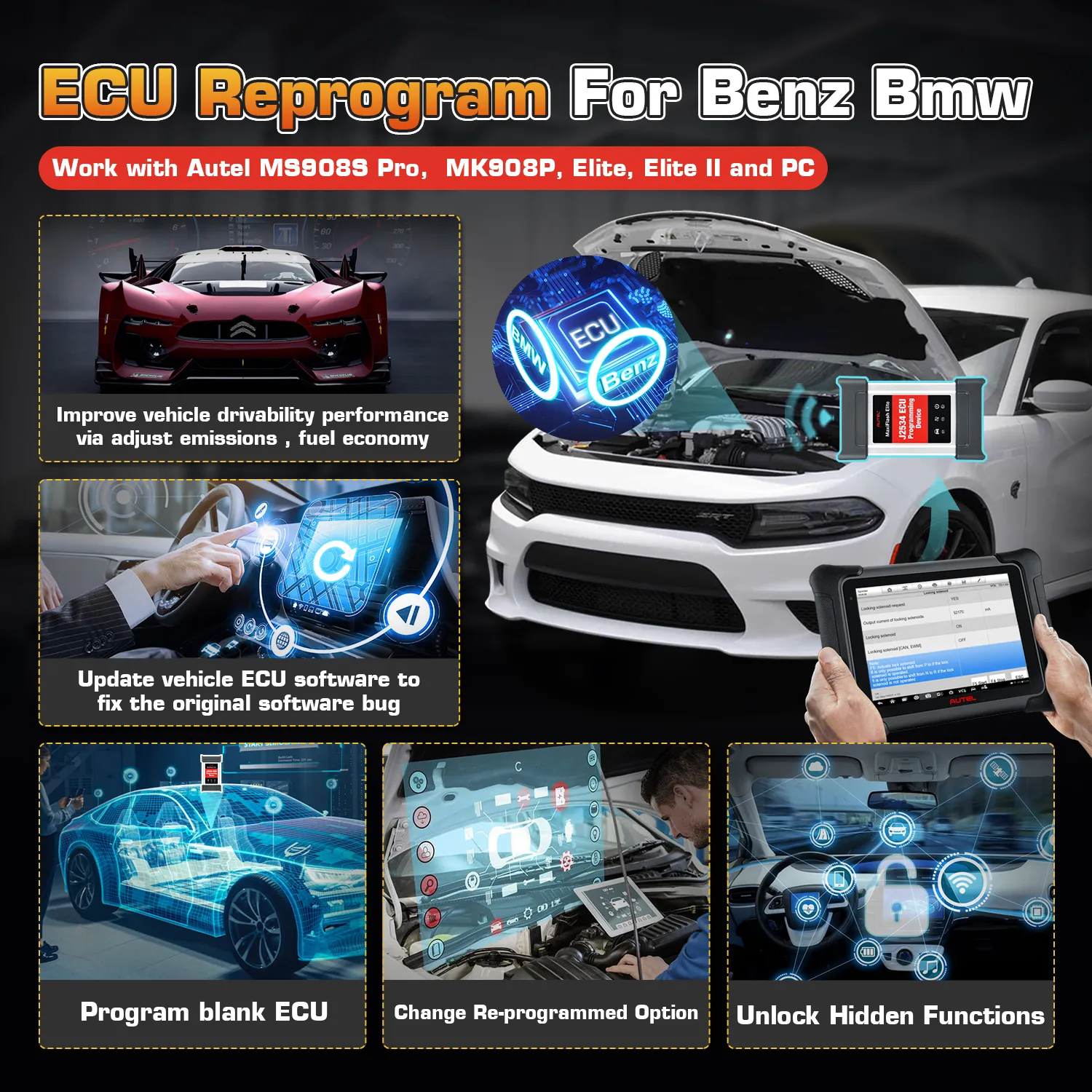 1. Autel MaxiFlash Elite can work together with Autel Maxisys 908/ 908P to support more cars