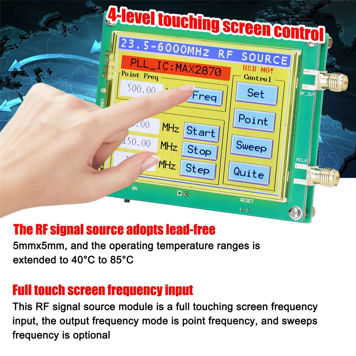 MAX2870 23.5-6000MHz Signal Generator 0.5PPM Low Noise Signal Source Touchable Screen PC Software Control PLL VCO