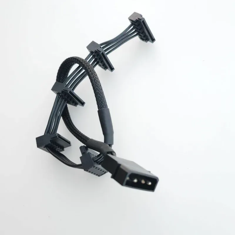 About 24cm between 4pin IDE Molex with the first SATA connector,4cm length between each SATA connector, total length about 40cm!