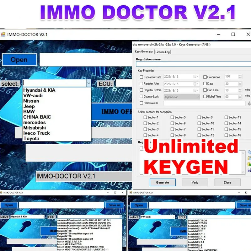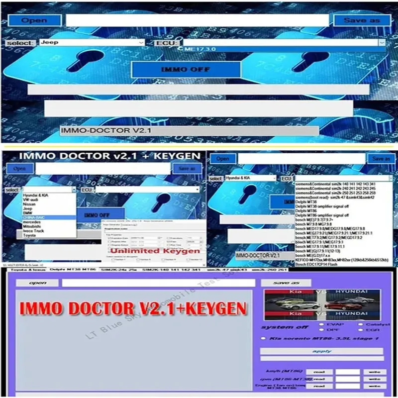 IMMO DOCTOR V2.1 With Unlimited KEYGEN Immo Off Software ECU Chip Tuning for sim2k MT38 ME 17.9.2 MED17.9.8 for BMW for Hyundai