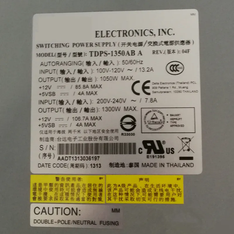 Computer Power Supplies Original PSU For NetApp X763-R6 1300W Switching TDPS-1350AB A 114-00040 A3