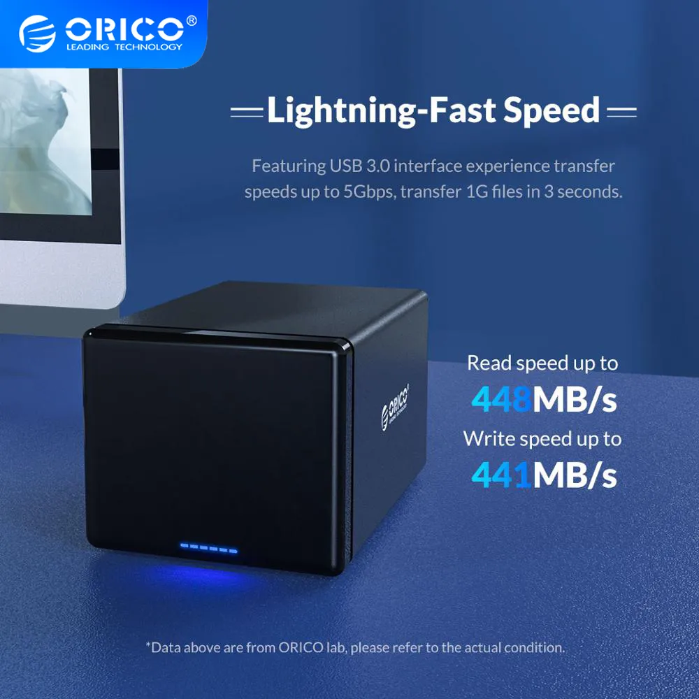 Product Code ORICO NS500C3 Material Aluminum Alloy ABS Supported Capacity 80TB,16TB Single Disk Dimension 136 x 224 x 160mm Output Interface USB3.1 Type-C Speed 5Gbps UASP (Theoretical Speed) Power Supply 12V6.5A Indicator Blue LED Indicator Installation Tool Free Supported System windows / / Linux