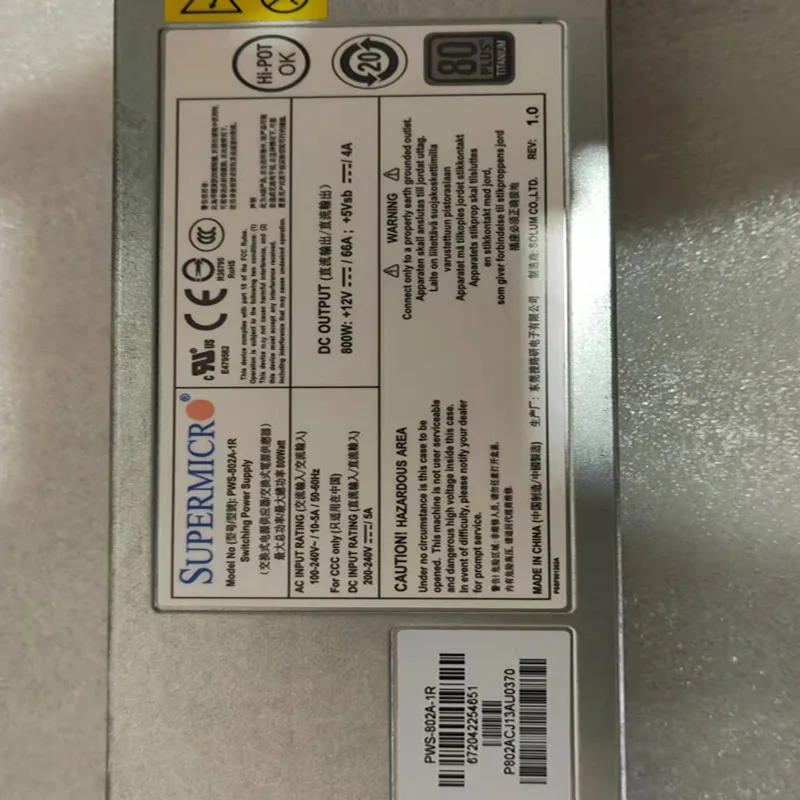 Original Computer Power Supplies PSU For Supermicro 5029P-E1CTR12L 800W Switching Power Supply PWS-802A-1R