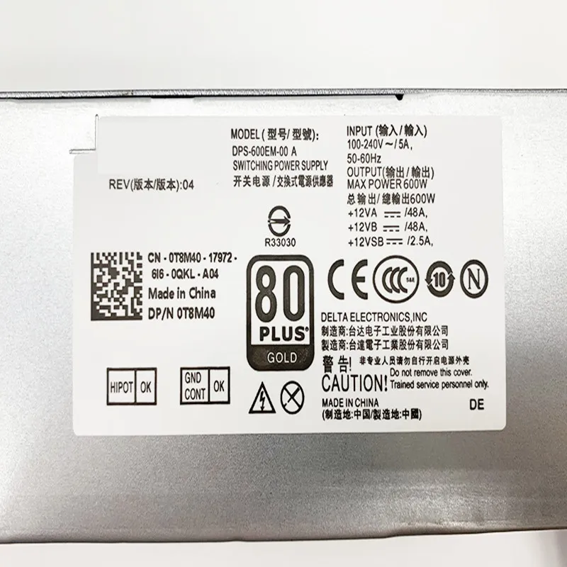 Computer Power Supplies New For Dell 3040 3250 3650 3046 5040 7040 7050 MT 600W Computer DPS-600EM-00 A 0T8M40