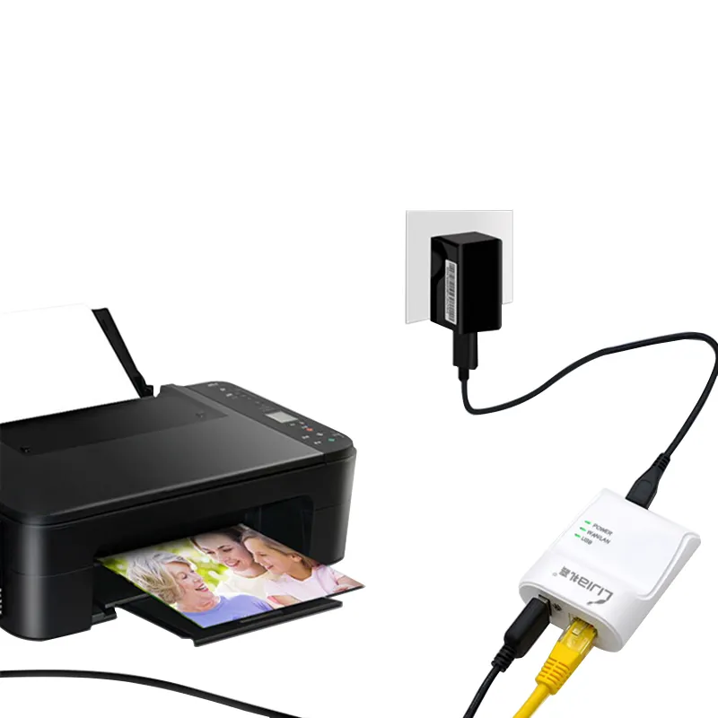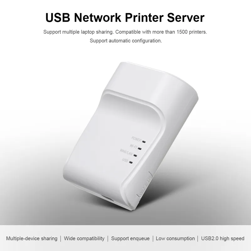 Larryjoe Wifi Ethernet USB Printe Server Adapter Auto Queue Connect Over Wifi 100M Lan for USB Printer Laptop PC EU/US Plug