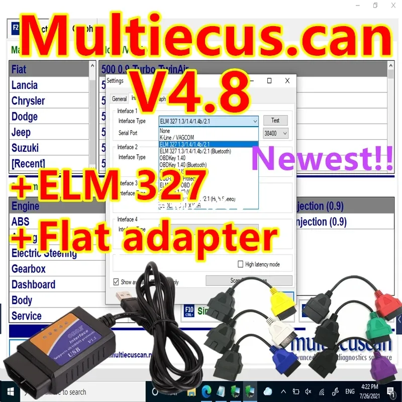 Newest Auto Repair MultiEcuScan 4.8 Software For Fiat Connector Multi-Ecu-Scan 4.8 Register Work With ELM327 MultiEcuScan V4.8