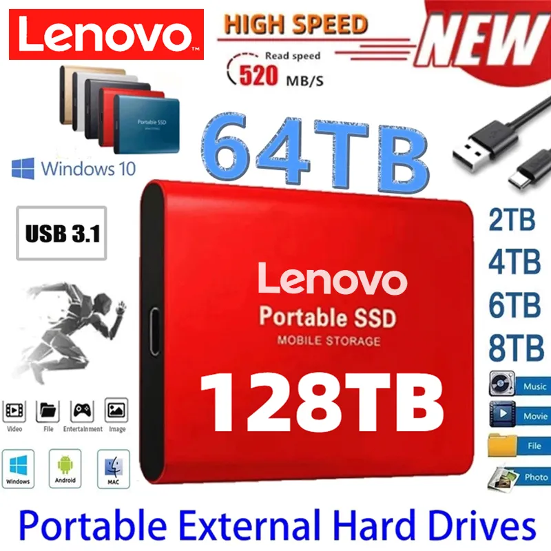 Lenovo 2023 Portable Disco Duro Externo USB 3.1 Type-C M.2 SSD External Hard Drive 500GB Flash Drive 8TB Hard Disks for Laptops