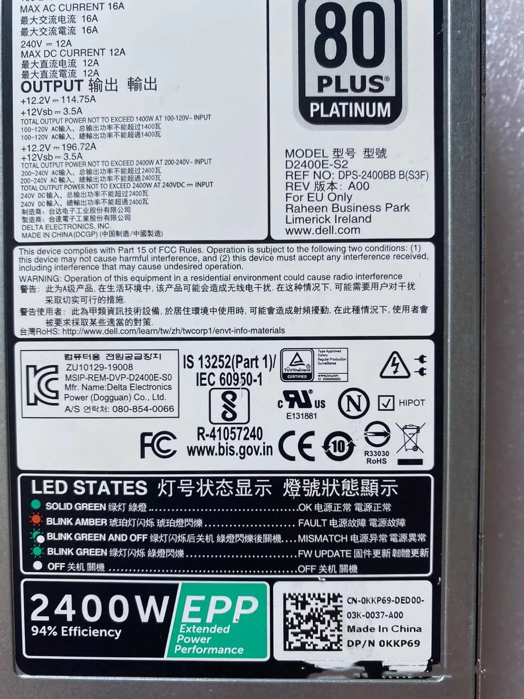 New Computer Power Supplies D2400E-S2 for DELL 2400W Server EPP Switching 0KKP69