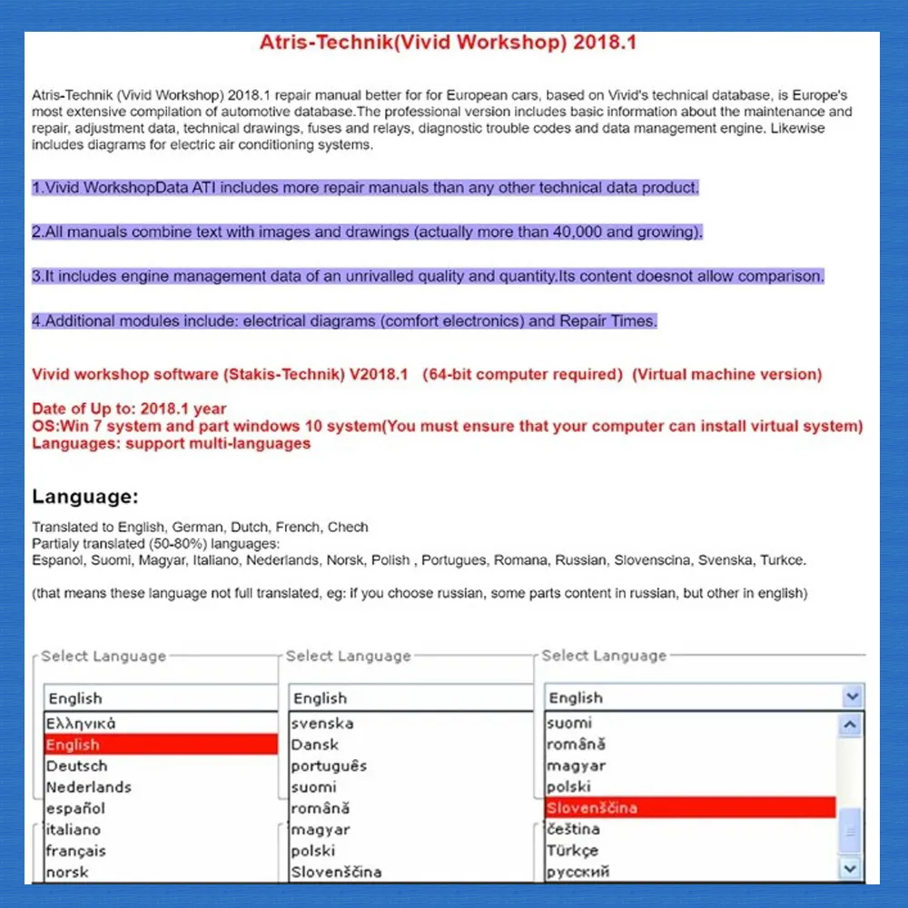 1.Vivid WorkshopData ATI includes more repair manuals than any other technical data product.