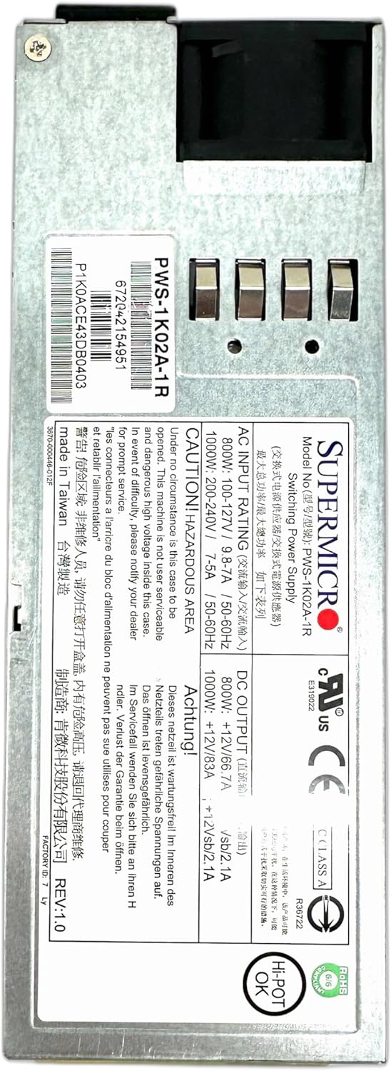 Supermicro PWS-1K02A-1R 1U 1000W Redundant Power Supply 73.5mm width Titanium Level,RoHS/REACH