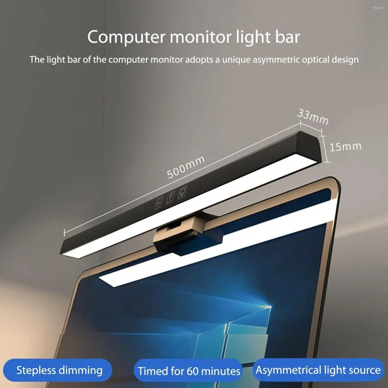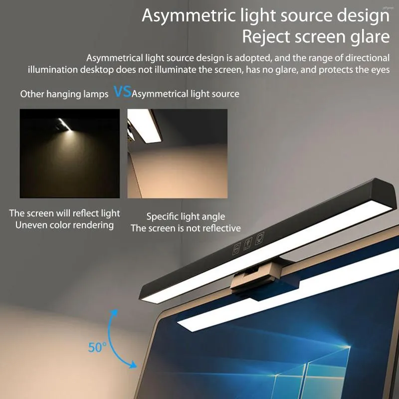 | Dimming Computer Monitor Light Bar Space Saving Display Hanging Desk Reading Lamp Eye Protection No Screen Glare Home Office for Study Laptop Feature: 1. No Screen Glare & Flicker-Free Anti-Blue-Light: The computer monitor light bar has a unique asymmetrical optical design that illuminates only your desk and keyboard while ensuring no reflected glare on the screen. Thanks to its advanced eye protection system, our desk lamps for home office blocks blue light and optical radiation, effectively relieving eye fatigue to protect your eyes. Its the ideal choice for students, painting designers, and business office workers. 2. Sensitive Touch Control & Auto-Dimming Design: New humanized design lets you control this office lamp by touching the switch. No more fumbling with a control cord! With a built-in ambient light sensor, our screen light bar intelligently adjusts the brightness to a comfortable level, according to the surrounding light throughout the day, keeping your eyes feeling comfortable. When in the dark, touch the auto-dimming key, monitor light will gradually reach its brightest level in 7-8 seconds. 3. Manual Stepless Dimming & Memory Function: Our office screen light lets you manually adjust the brightness and color temperature by long-pressing the stepless dimming key. Its 3000K-6500K stepless color temperature adjustment allows you to switch between cold light and warm light at will for a comfortable work environment all day. Ultra-high CRI95 LEDs help to show the actual color of the object perfectly. The memory function automatically remembers your last setting - no need to reset! 4. Space Saving Design: Monitor bar lamp can be powered by a computer, phone charger, or power bank. Our ingenious, scientifically designed fixing clip allows this task lamp stable mount on top of the computer, helping you save valuable desk space and creating a stylish workspace. The length is 50CM, suitable for desktop computers, and the short length is 33CM, suitable for notebook computers. According to your needs, choose the light bar suitable for your computer. 5. Long Lifespan and Premium Support: Our E-reading LED task lamp is sturdy yet a great touch feeling, exclusively built for business professionals, help you work more efficiently and comfortably. Computer light perfect as an office desk lamp and home desk lamp. Specification: Product material: ABS Shell color: black Light color: white light/warm light/normal light Power supply: USB port plug in Rated power: 5W Rated voltage: 5V/1A Light source and number of lamp beads: Long 50cm: LED (2835 * 78 * 0.5W/LED) Short 33cm: LED (2835 * 48 * 0.5W/LED) Switch type: touch type Application: The long 50CM is suitable for desktop computers with larger screens, and the short 33cm is suitable for laptops with smaller screens Function: 1. Turn off the light at a fixed time of 60 minutes, 2. Dimming without poles, 3. Fast reading mode, 4. Three color temperature adjustment, 5. Asymmetric light source, 6. Anti blue light. Long: Product weight: 260g color box, 230g net weight Product size: 500 * 83 * 29mm/19.7*3.26*1.14in Package size: 504 * 88 * 33mm/19.8*3.46*1.3in Short: Product weight: 200g color box, about 170g net weight Product size: 330 * 83 * 29mm/13*3.26*1.14in Package size: 335 * 93 * 31mm13.2*3.7*1.2in Note: 1 x Computer Monitor Lamp 1 x Power Cable