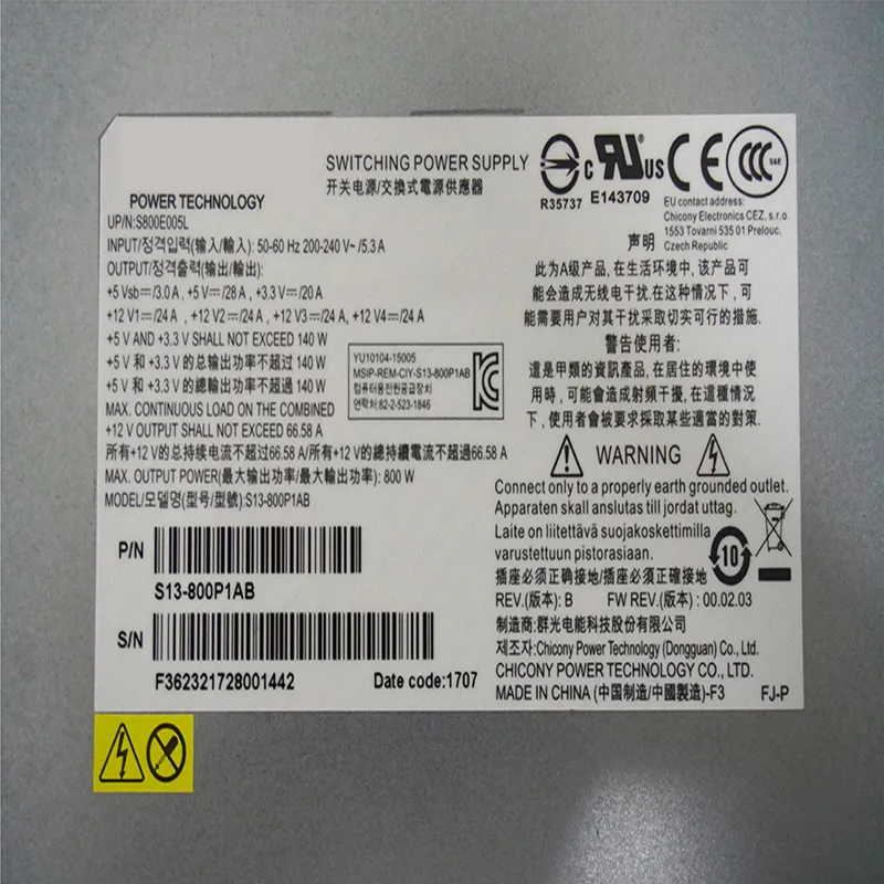 Computer Power Supplies New Original PSU For Chicony 1U PMBUS 800W Switching S13-800P1AB