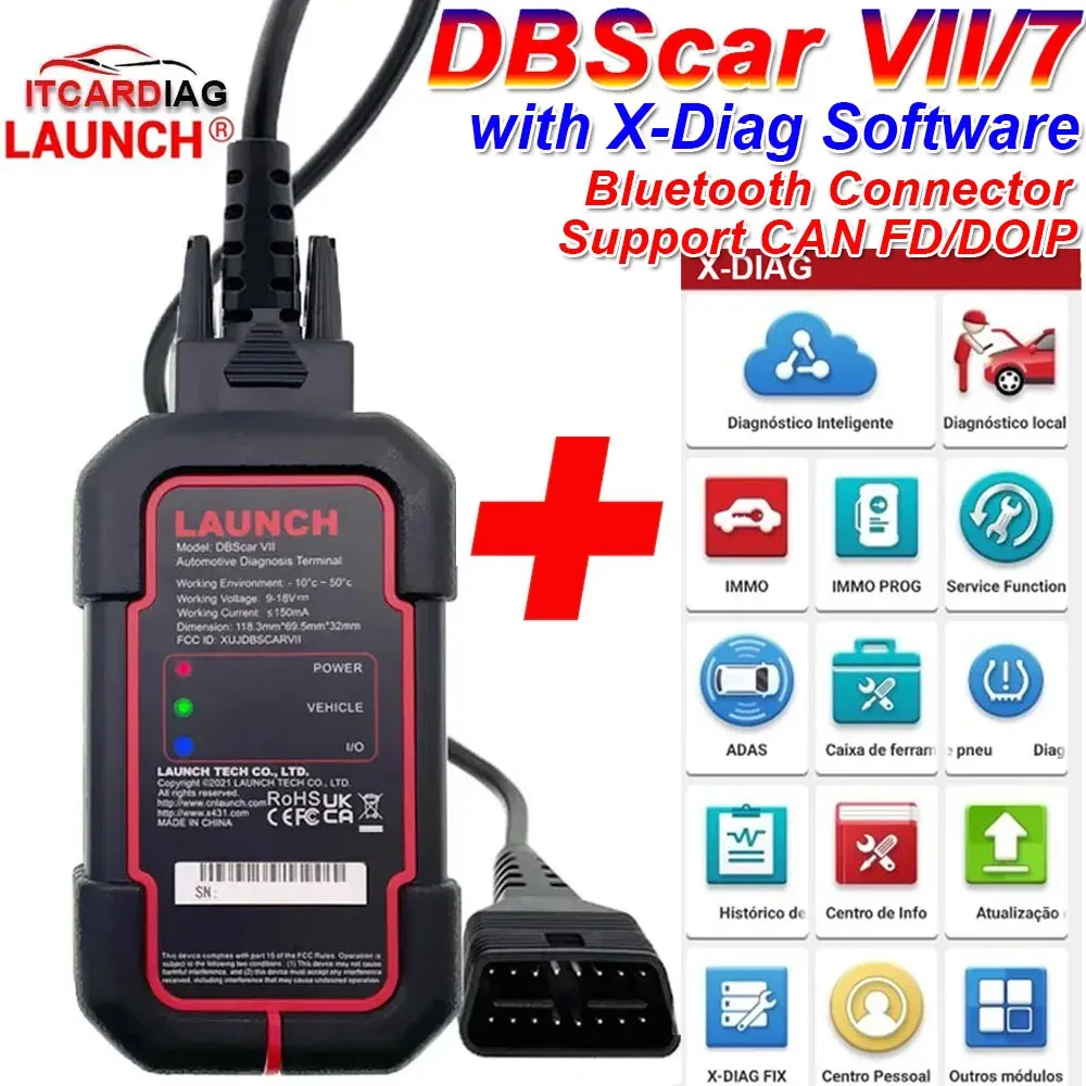 Launch X431 DBScar VII DBScar7 & X-Diag Software Bluetooth Connector DBSCAR Code Scanner Support Doip and CAN FD Protocol
