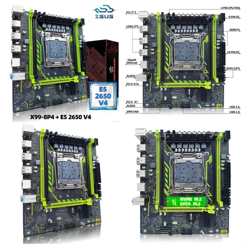 Motherboards X99-8D4 Zsus Motherboard Set Kit With Intel Lga2011-3 Xeon E5 2650 V4 Cpu Ddr4 16Gb 1X16Gb 213Hz Ram Memory Nvme M.2 Sata Otvcg