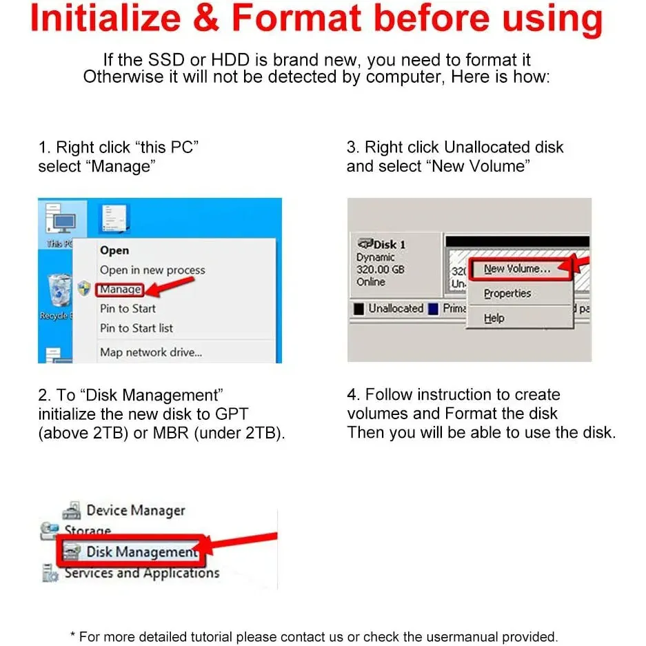 Suitable for all 7mm/9.5mm 2.5-inch SATA 1/2/3 HDD or SSD.