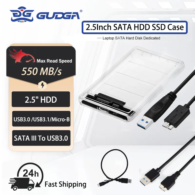 2.5 inch Plastic Transparent HDD SSD Case SATA III to USB 3.0 Hard Drive Disk Enclosure for Laptop Notebook PC