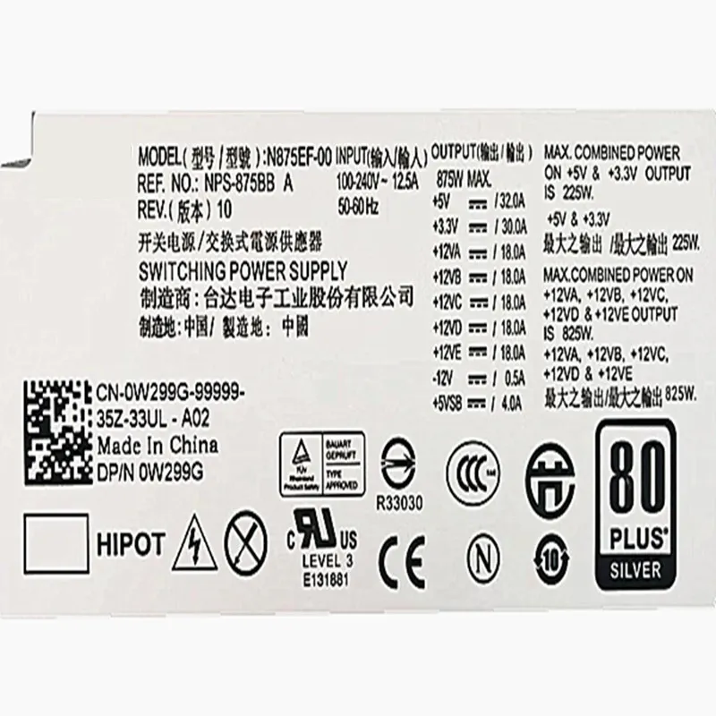 Computer Power Supplies New PSU For Dell T5500 5400 7400 3400 66Pin 875W H875E-00 N875EF-00 NPS-875AB/875BB A H875EF-00 H875P-00 N875E-00