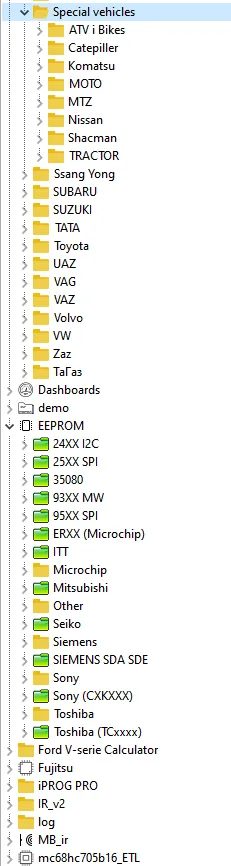 and more special functions like d-p--f off, MIL to KM, PINABS, PINCODE SMATRA3,PINCODE SENSOR SPEED LIMIT,ODO Adjust, Fujutsu, Microchip, Motorola, Motorola912EN, NECV850, BLR, CAN,CRC_Cript, ibutton, sd_unlocker,test etc.