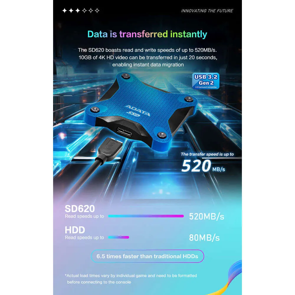 Original ADATA SD620 External Solid State Disk 512GB 1TB High Speed USB 3.2 Gen 2 Portable 3D NAND SSD For Desktop Laptop PC