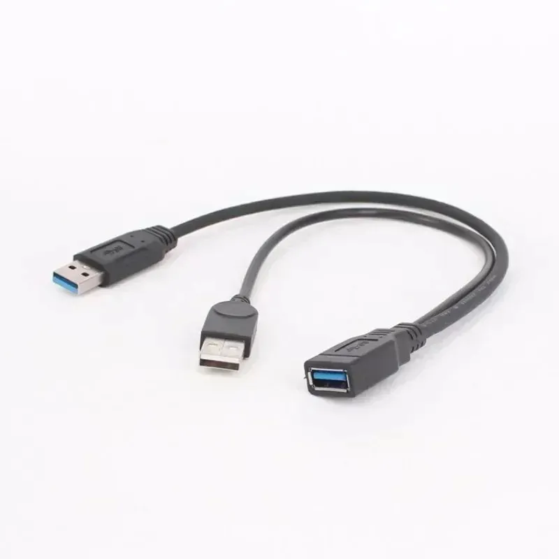 1pc Black USB 3.0 Female To Dual USB Male with Extra Power Data Y Extension Cable for 2.5\