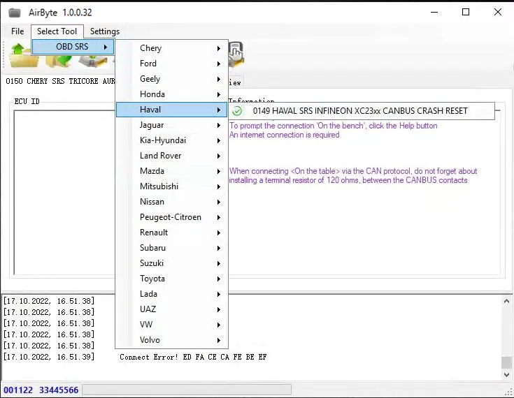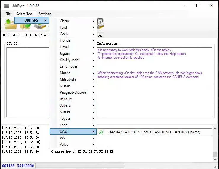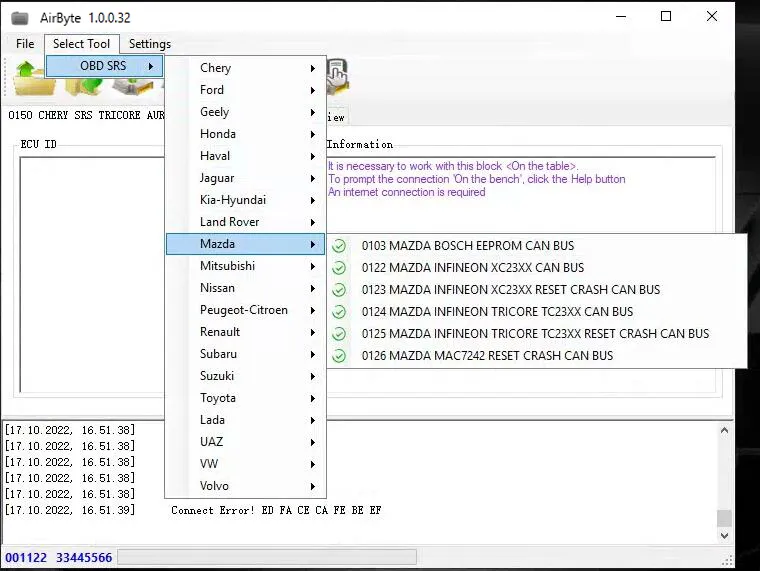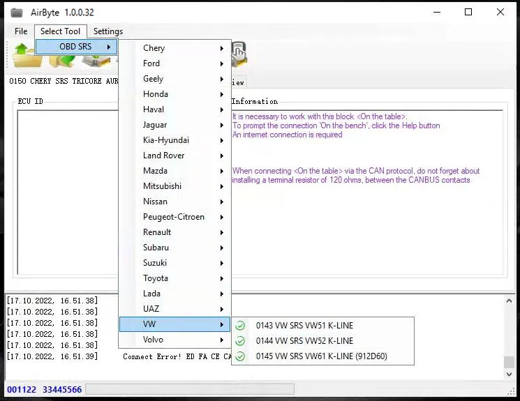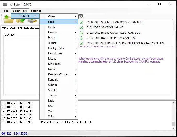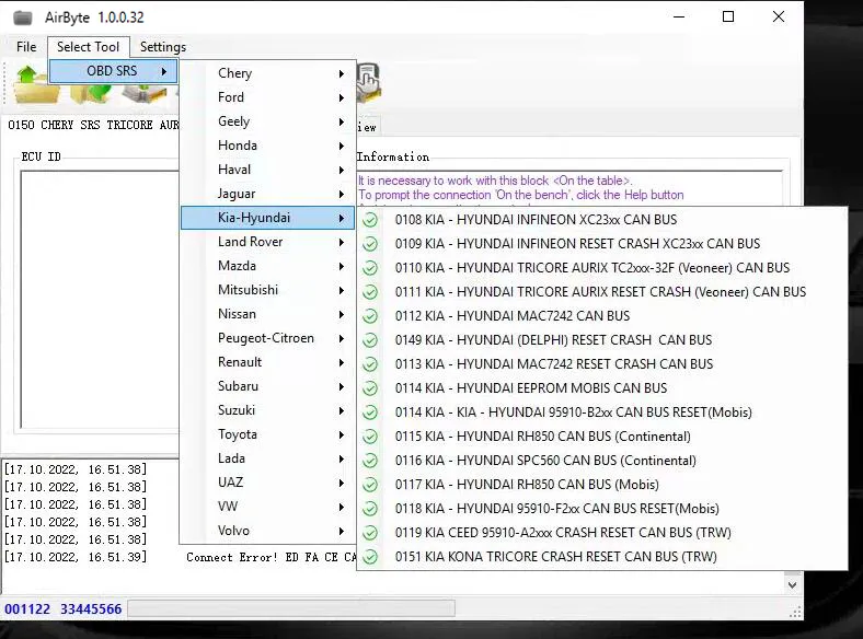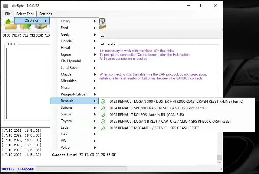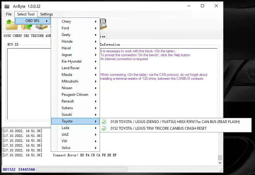 AirByte J2534 FULL 1.0.0.32 Software Cleaning Crash Data in SRS ECUs via J2534 adapter