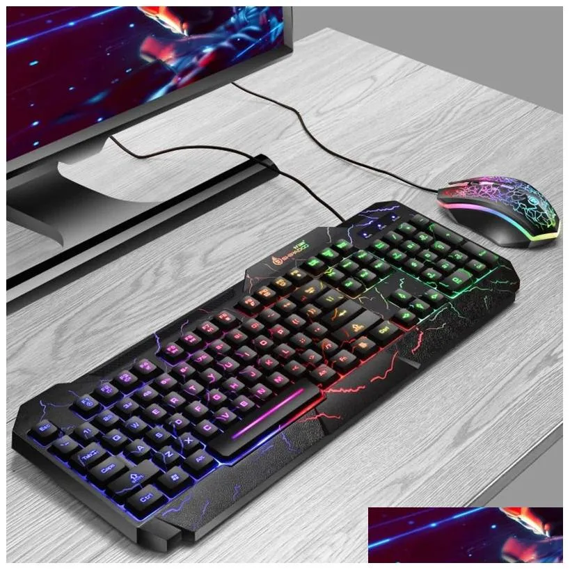 Burst Office Gaming Keyboard Mouse Set Peripheral Mechanical Feel Luminous And 231228 Drop Delivery Computers Networking Keyboards, M Dhgwn