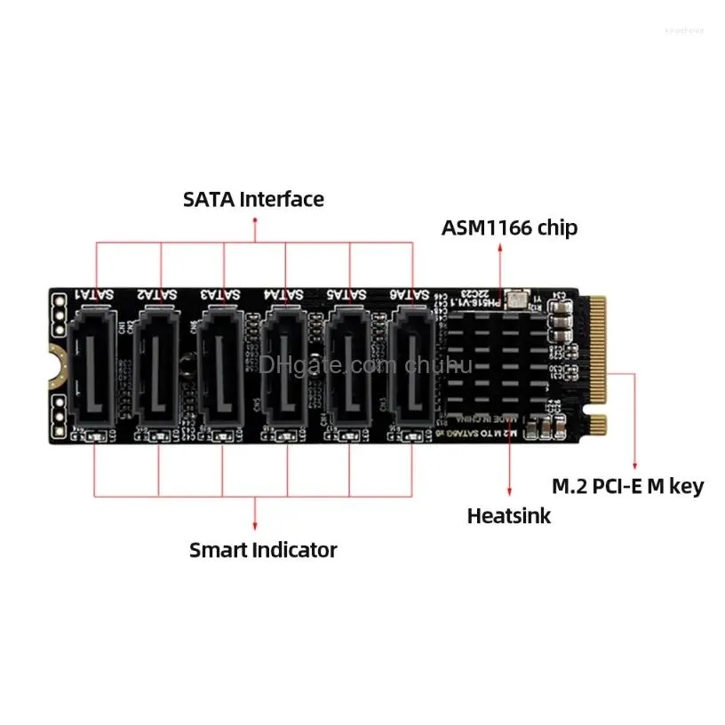 Computer Cables Connectors Uter S M.2 Nvme Pci-E Pcie X4 X8 X16 To 6 Port 3.0 Sata Adapter Card Riser Iii Asm1166 6Gb/S Chassis Server Ot5Vm