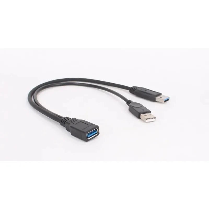 1pc Black USB 3.0 Female To Dual USB Male with Extra Power Data Y Extension Cable for 2.5\