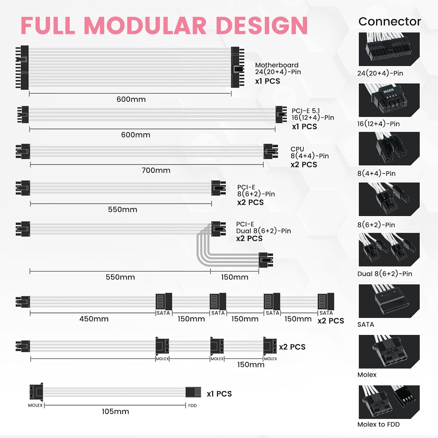 • Full Modular Design: Allows for easy cable management and customization, so you can install only the cables you need and reduce clutter