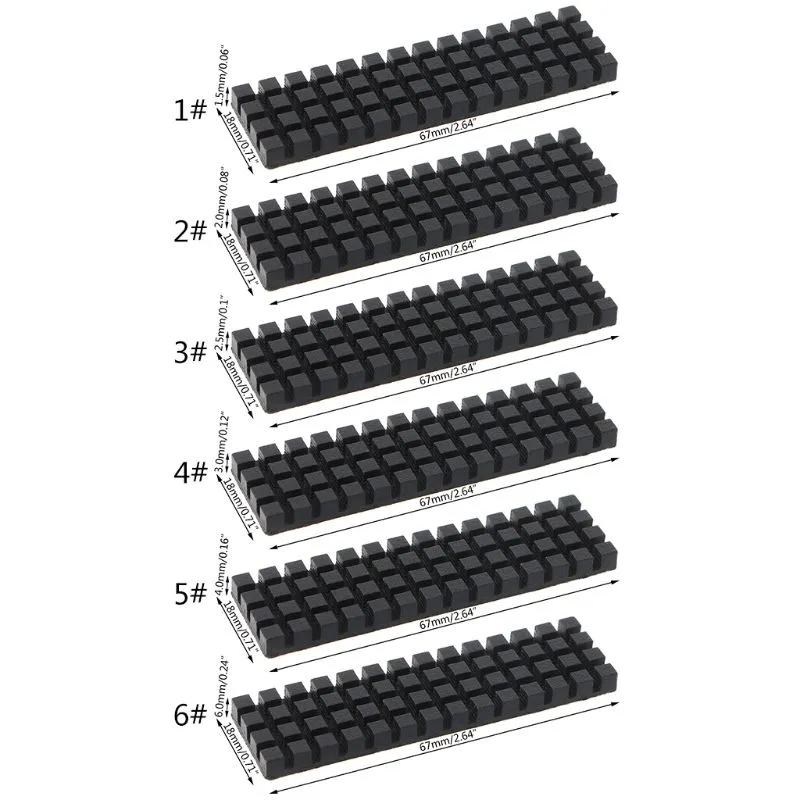 Size: 67x18x1.5mm/2.6x0.7x0.05in, 67x18x2mm/2.6x0.7x0.07in, 67x18x2.5mm/2.6x0.7x0.09in, 67x18x3mm/2.6x0.7x0.11in, 67x18x4mm/2.6x0.7x0.15in, 67x18x6mm/2.6x0.7x0.23in(Optional)