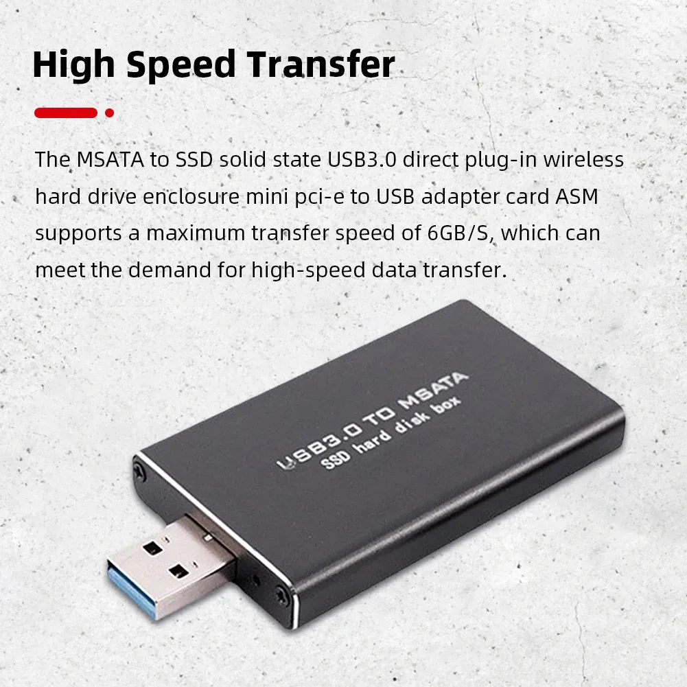 MSATA To USB 3.0 SSD Enclosure External HDD Hard Disk Box 6Gbps USB 3.0 to mSATA Converter Adapter for 30*30/50 MSATA SSD