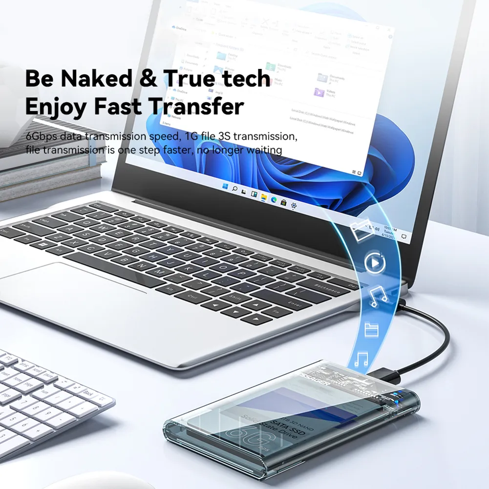 2.5 Inch SATA Box Mobile Hard Drive Cases Max 6TB USB 3.0 External Hard Drive Case Tool-Free 6Gbps Speed for 2.5inch 7/9.5mm SATA HDD SSD Feature: 1. Support for 2.5-inch SATA I/II/III HDD and SSD: This HDD enclosure, is compatible with all standard 7mm/9.5mm 2.5-inch SATA I/II/III hard disk drives (HDD) and solid-state drives (SSD). It supports storage capacities of up to 6TB (maximum), providing ample space for your data storage needs. 2. Tool-Free Installation: With its tool-free design, this Hard disk enclosure allows for easy installation without the need for additional tools. The plug-and-play feature enables hot swapping, allowing you to connect and disconnect drives without restarting your computer. The LED indicator provides visual cues for drive activity and status. 3. No Reboot or Extra Drivers Required: This mobile hard drive cases is designed for seamless compatibility. You can connect your drive and start using it immediately without the need for a system reboot or installing any additional drivers. It offers effortless and hassle-free functionality. 4. Wide Compatibility: This hard disk case is compatible with various operating systems, including for Windows 98/2000/XP/Vista/7/8/10, Linux, and OS 9.1/10.8.4 and above. Whether you`re a Windows, Linux, or user, this enclosure ensures cross-platform compatibility for convenient data access. 5. USB 3.0 Transfer Speeds: Equipped with USB 3.0 interface, this external hard drive case offers high-speed data transfer rates, significantly improving the read and write speeds of your SSD. It maximizes the performance potential of your solid-state drive, allowing for faster file transfers and improved overall efficiency. Specification: Origin: Mainland China Size: 2.5 Color: Transparent Material: ABS PC Interface: USB3.0 Micro B interface Cable length: 50cm Function: Data reading Transmission speed: 6Gbps Installation method: tool free installation Net weight: 48g Gross weight: 59g Product size: 124 * 78 * 13mm 4.88x3.07x0.51inch Note: 1 X Hard Drive Case 1 X USB 3.0 Cable