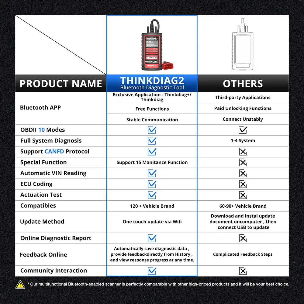 THINKCAR Thinkdiag 2 OBD2 Scanner Support CAN FD Protocols Fit For GM Car Brands Free Full Softwares 16 Reset Functions ECU Code