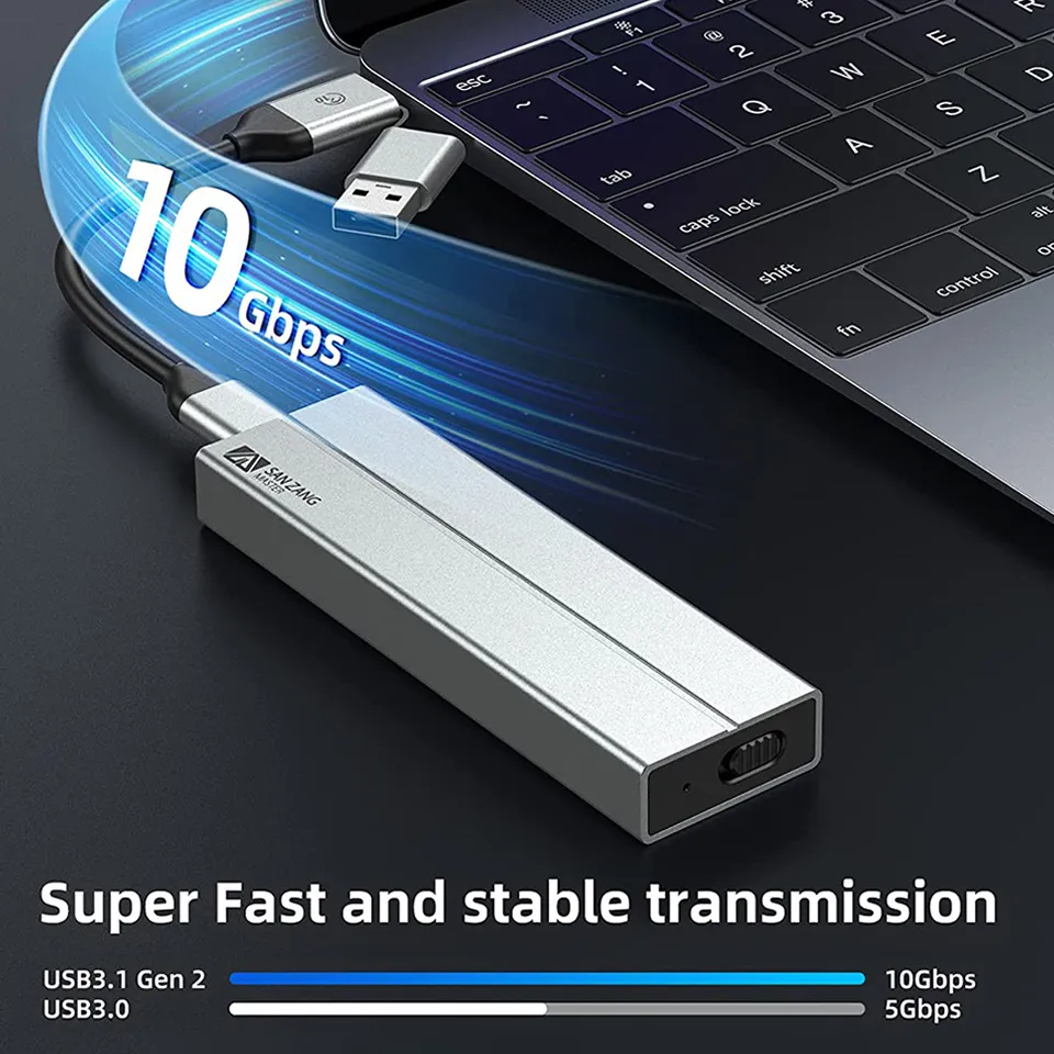 SANZANG M.2 NVMe SSD Enclosure NGFF SATA External Case M2 USB 3.2 Type C Hard Disk House B&M Key HD Storage Box for PC Laptop