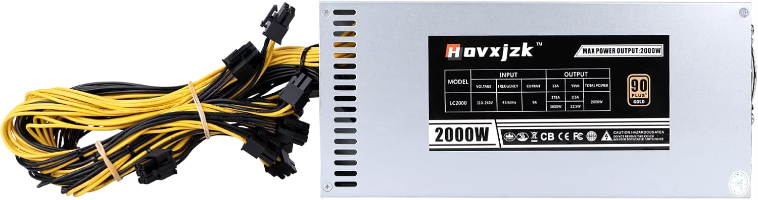 • The miner PSU can be used in 110V-240V. Input AC110V, rate power is 2000w, Power efficiency is 80%, so out put power is 2000*0.8=1600W. Input Above AC240V, the rate power is 2000W, Power efficiency is 90%, so out put power is 2000*0.9=1800W. Please calculate the rated power of the GPU, We suggest to leave 200W for motherboard, fan, and other wire consumption.